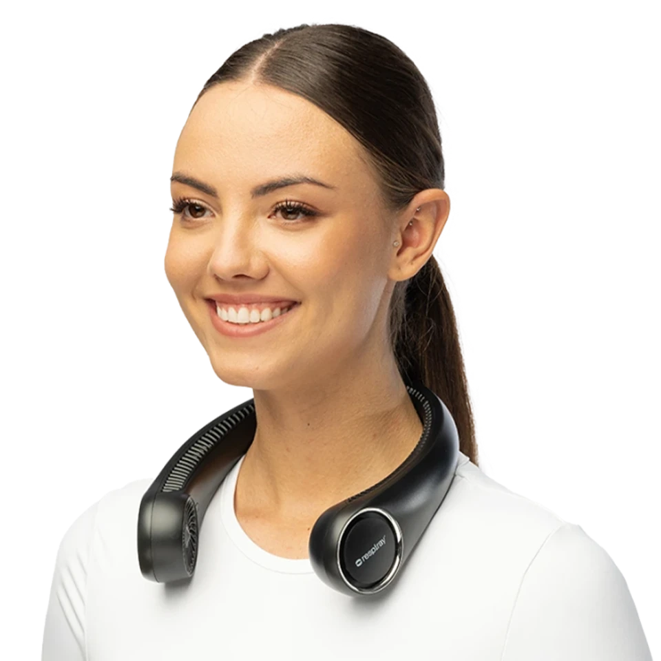 Neck fans offer hands-free cooling, reduce sweating, and help improve comfort, focus, and energy in hot conditions. They can provide relief from hot flashes, save energy compared to AC, and keep you cool during work, workouts, or travel. The best neck fans – like Respiray – add whisper-quiet operation, long battery life, and complete freedom from wall outlets.